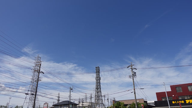 空の雲は秋ながら今日の気温は再び30度超えて昼過ぎに32度を記録。ただ空気が乾いているのでベタベタした蒸し暑さは感じない。それでもこの気温なのでエアコンが復活した。