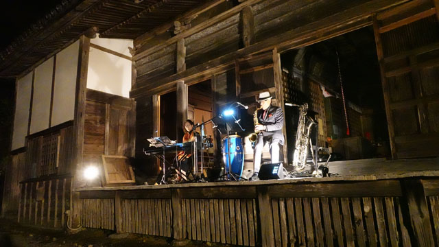 丹生で今年が3年目の「宵宮さんぽ」という夜のイベントがあり、ボクは丹生大師の本堂脇でピアノさんとデュオ演奏をさせていただいた。