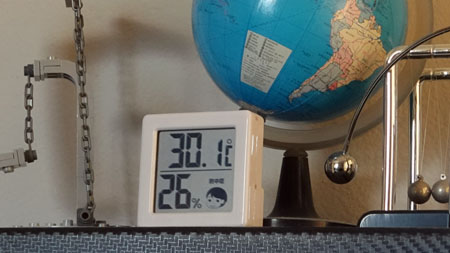 午後、自室であれこれガサゴソやってたら妙に暑い。で温度計を見たら、なんと30度超え! これが午後4時。