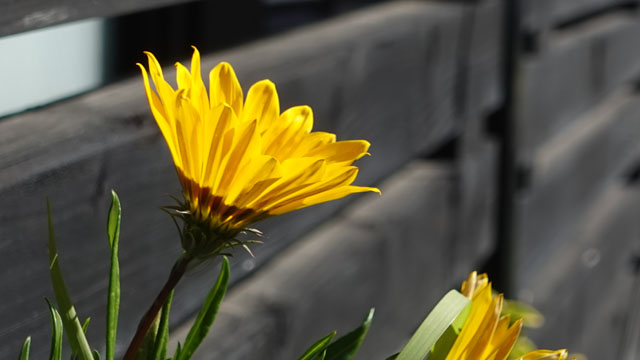 ちょうど朝日がガザニアの花の内側を照射する位置にあったので、こんな金色に光る花びらが撮れた。こんなのは人工的に細工をしない限り、撮ろうと思っても撮れるものではない。こういうのを”決定的瞬間”というのだな。