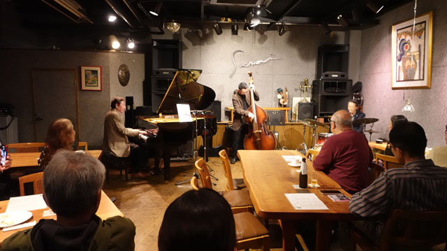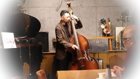 しかしベースの音量には驚いた。店の後ろの方で聴いていたのだけど、腹にビンビンと響くので一体どういうセッティングかと思ったら、なんと完全生音。ガット弦を使用しているというのだけど、だからといってこんなに音量が出るということでもないだろうし、やはり奏者の腕によるということだろう。生音でこの音量は初めての経験だった。彼にはアンプは必要ないな。