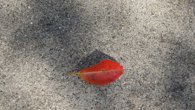 毎年同じような写真を撮っているが、今年も駐車場に飛んできた赤く色づいた葉を激写。背景はコンクリートなのだけど、こうして見るとだいぶ汚れてきているな、年末までにはケルヒャーしないとイケナイか。高圧洗浄機を使うと面白いように汚れが落ちるのはいいんだけど、跳ね返りの泥で着ている服もスゴイことになる。