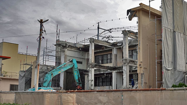 ここも家の近所の建築現場。現在は古い建物を解体しているところ。どんどん古い町並みが変わっていく。町の新陳代謝という意味では歓迎すべきことなんだろうけど。そういえば鉄板アジトのお隣も来月に解体するそうだし、反対側の隣家もすでに無人なのでそのうち取り壊しになるのだろう。あそうそう、我が家のお隣さんも来年に取り壊しするそうだ。つまりそれだけ古い家が多いとか、独居老人宅が多いということでもある。