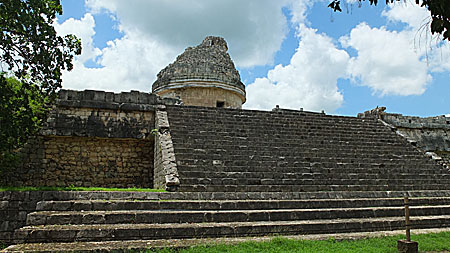 マヤ文明といえば階段ピラミッドや20進法による高度な数学、精緻な天文観測、などが有名で、過去には2012年に人類滅亡説が広まったが、あれはマヤ暦の5125年周期の終わりと新たなサイクルの始まりの日という意味だったらしい。それにしてもこの長期暦を計算で算出しているとは驚きだ。確かにチチェン・イッツァには現代の天文台のようなカタツムリ型の天文観測施設が残されていて、その外形に驚いた。