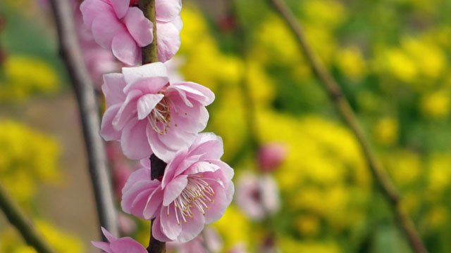 なにしろ近場なので、今日のように買い物に出たついでに寄ってくるなんてことが出来る。畑の中にある梅エリアの庭園で完全無料。それでもそれぞれの木は結構大きいので梅の花も沢山咲いている。さらに写真の背景の黄色でも分かるように、以前にはここまで無かった菜の花が梅に負けじと咲いている。